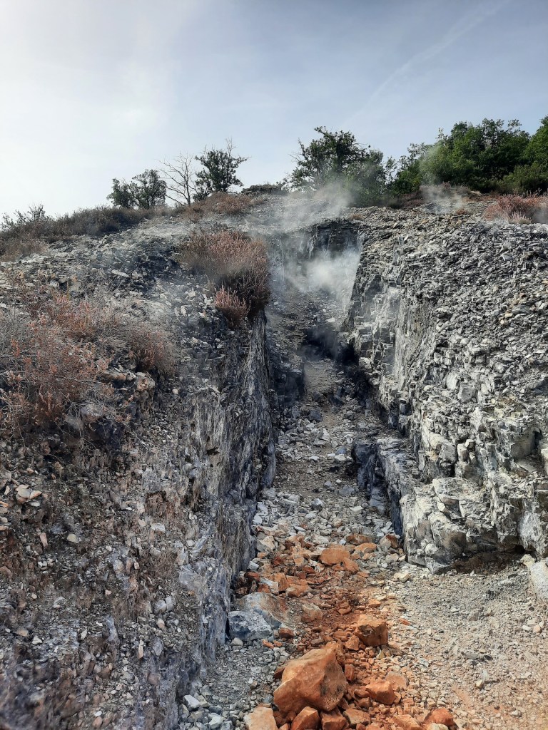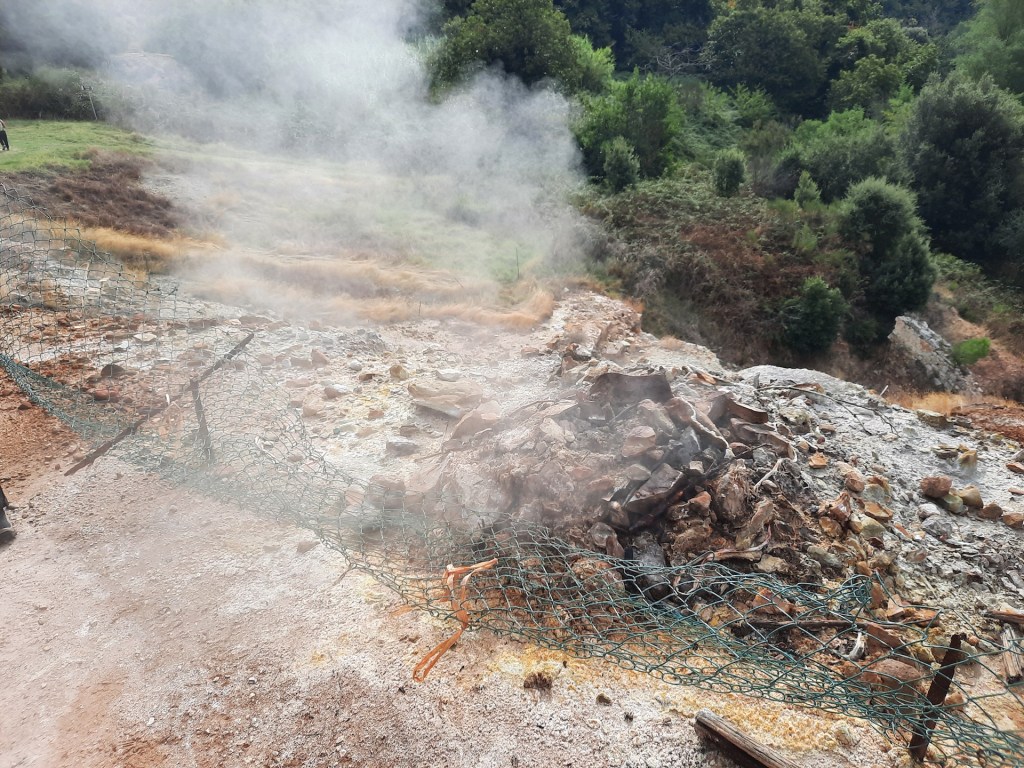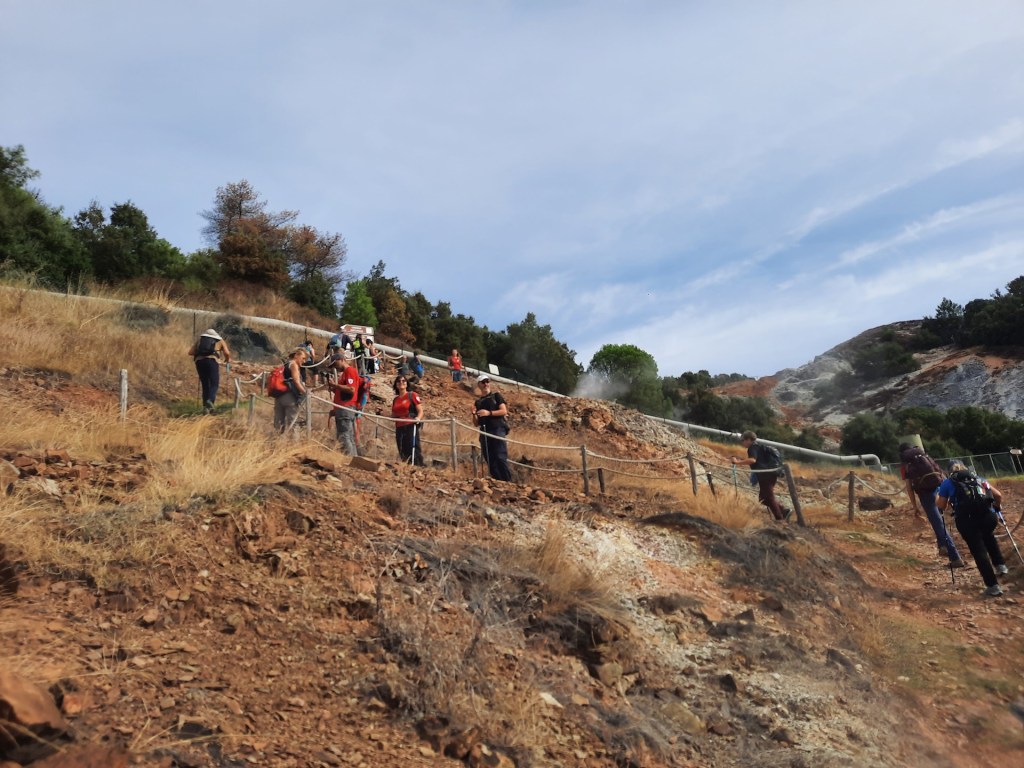 Il percorso ci ha infatti visti partire da Monterotondo Marittimo (a pochi passi dal suo cimitero, per restare in tema) per attraversare il Parco Geotermico delle Fumarole: un paesaggio brullo ed insolito, ricco delle manifestazioni geotermiche chiamate “fumarole”: esalazioni di vapore caldo che fuoriescono dal terreno, anche con pesanti odori e curiosi ed inquietanti rumori di acqua in ebollizione.