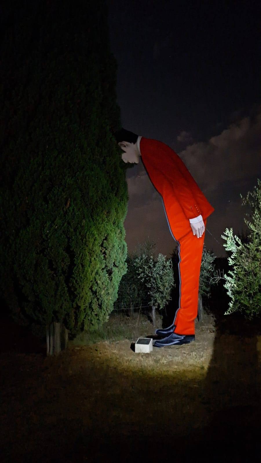 Percorsi pochi km è possibile ammirare gli “Struzzi Metropolitani”, un uomo e una donna alti circa 5 che immergono la faccia tra i rami dei cipressi.