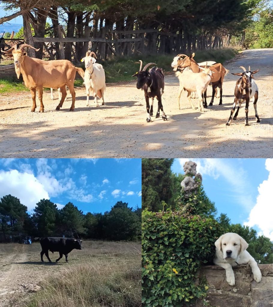 Durante il percorso abbiamo fatto tanti incontri: camminatori come noi, gente in bicicletta, automobili (purtroppo), capre e tori!!! E tanti cani che ci hanno salutato con il loro festoso abbaiare.